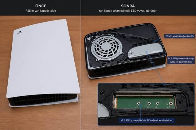 PS5 içine uygun bir PCIe 4.0 M.2 SSD takabilirsiniz. Üstelik yan kapakları açıp bu yükseltmeyi yapmak garanti dışı kalmak anlamına gelmez.
